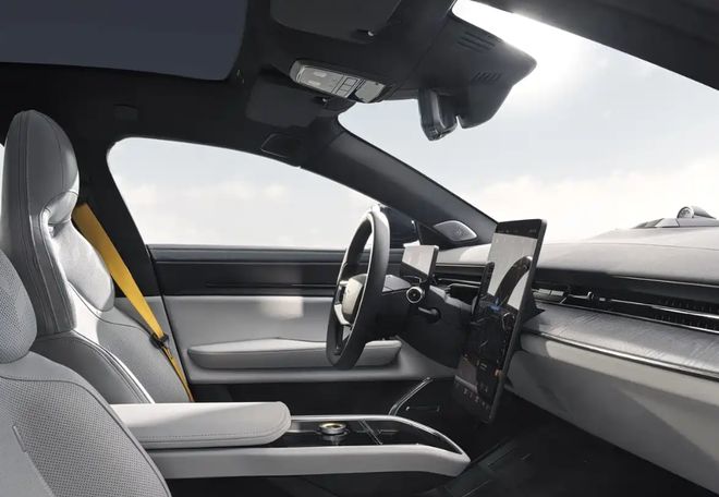 Polestar 5的座舱依旧延续了北欧极简主义与可持续理念。中控台采用一整块亚麻纤维复合材料打造,表面的编织纹理在不同光线下呈现出独特的质感。取消了传统物理按键,将空调控制、座椅调节等功能集成至触控屏中,但保留了音量调节旋钮和驾驶模式切换拨杆。