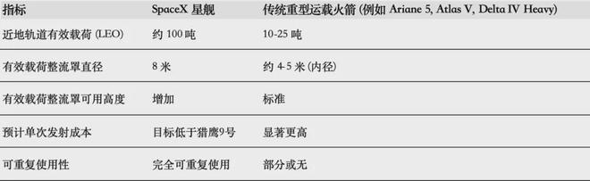 星舰的变革潜力源于其在几个关键指标上的巨大飞跃,这些指标共同重新定义了太空任务的可行性边界。