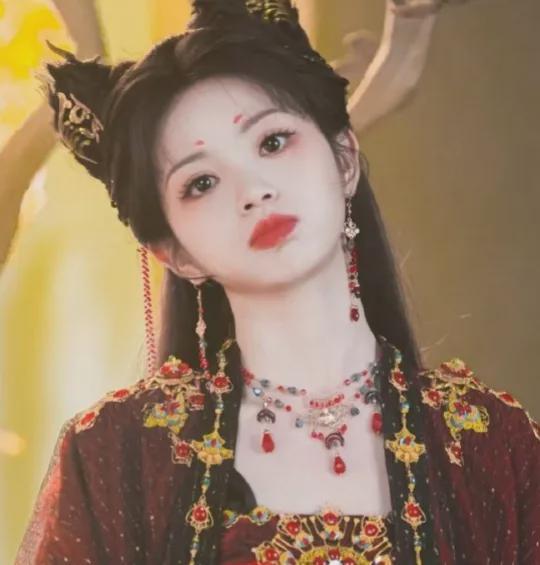 如今在《子夜归》饰演武祯,和以往甜妹风格有很大不同,除了古灵精怪,还有妖娆御姐的一面。白天是嚣张跋扈的清和县主,夜晚化身猫妖首领“猫公”,红瞳、猫耳等妖化造型突破甜美风格,展现飒爽英姿。明艳妆容和华丽服装加身,是继《大奉打更人》临安公主后又一贵气的角色。