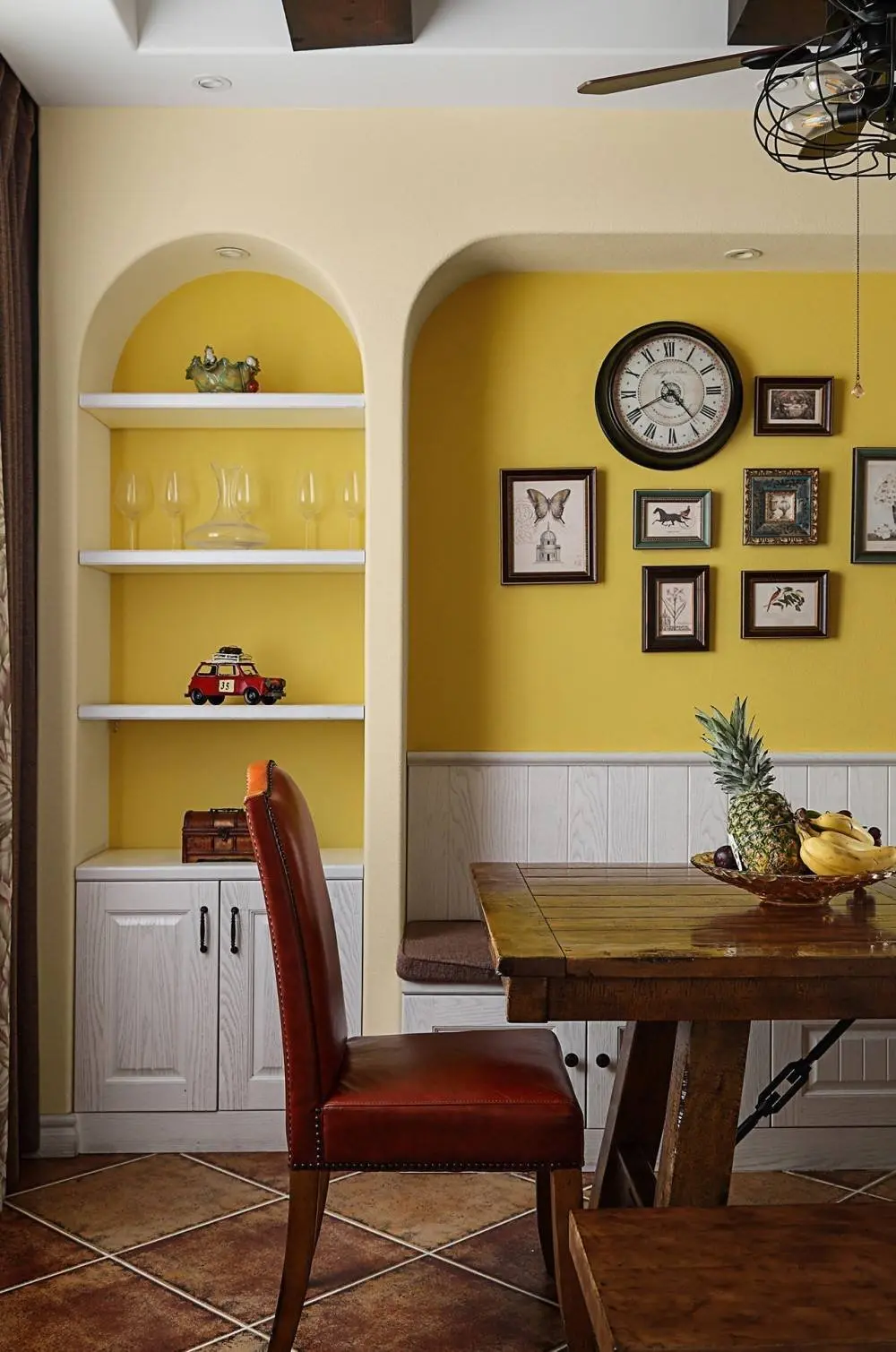 白色田园系餐桌椅,花鸟绘餐边柜……繁简得宜、大方得体,简单的陈设、利落的线条、素雅的色调只为一方纯粹之地,来真切品尝家的味道。