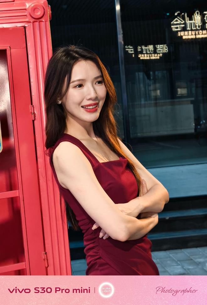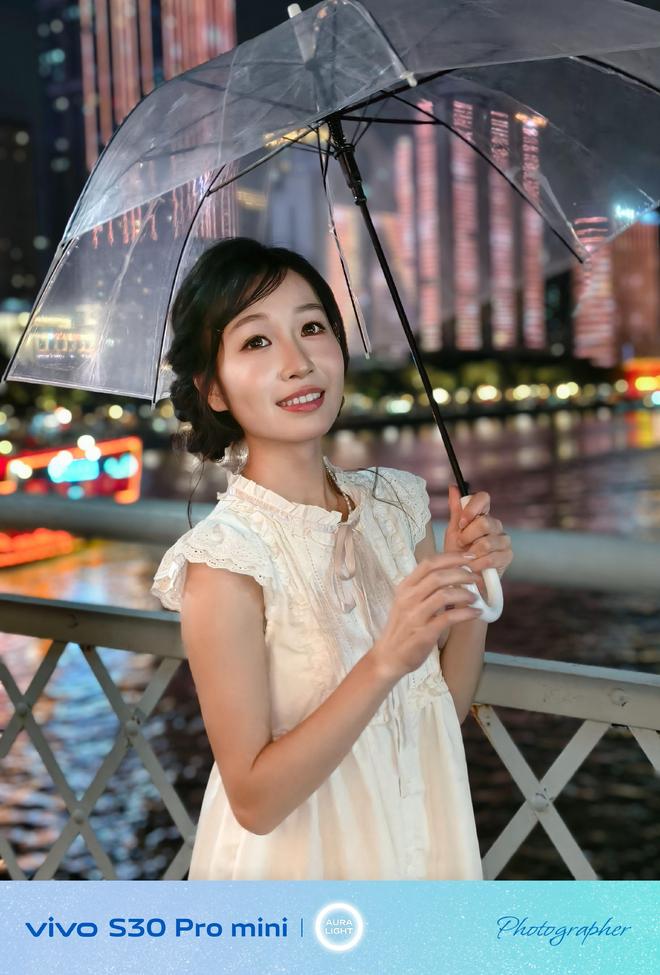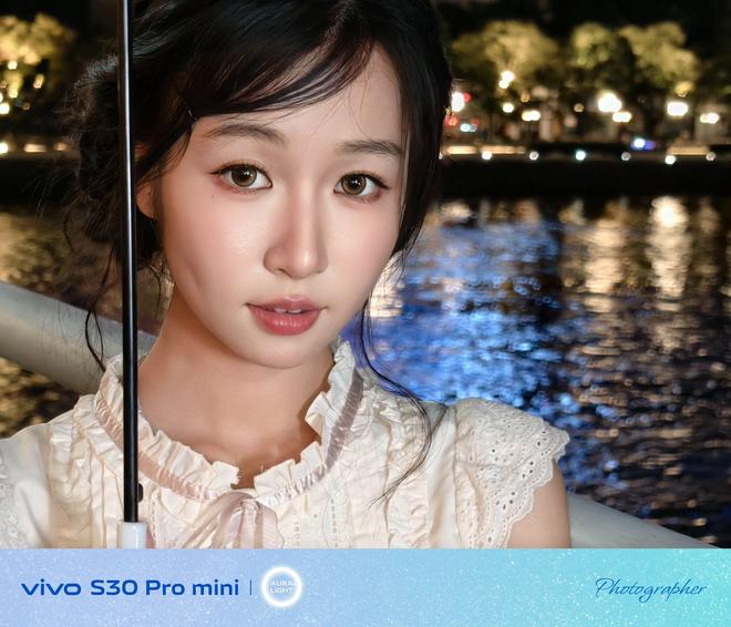 而在暗弱光的夜晚场景下,vivo S30 Pro mini也能轻松驾驭。在灯饰繁杂的街头,随手一拍,同样能够直出氛围感满满的人像大片。比如路灯照耀下的场景,模特置身其中,画面清透明亮,AI算法对于肤色的提亮,更加凸显了模特本身,同样是充满情绪与温度的照片。