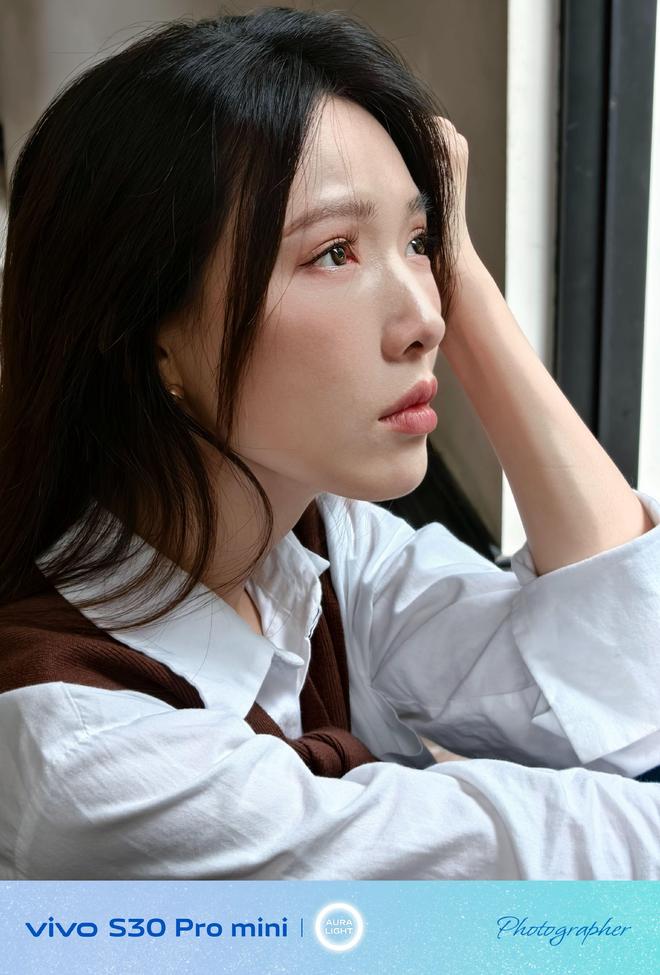 我们再看到人像本身,整体的光影还是在线的,五官立体有层次,肤色细腻有光泽,并不会被美颜算法过度涂抹,还保留有自然的肌理。而虚化过渡处理得也较为自然,模特与背景的融合度相当高,进一步提升了画面的氛围感。